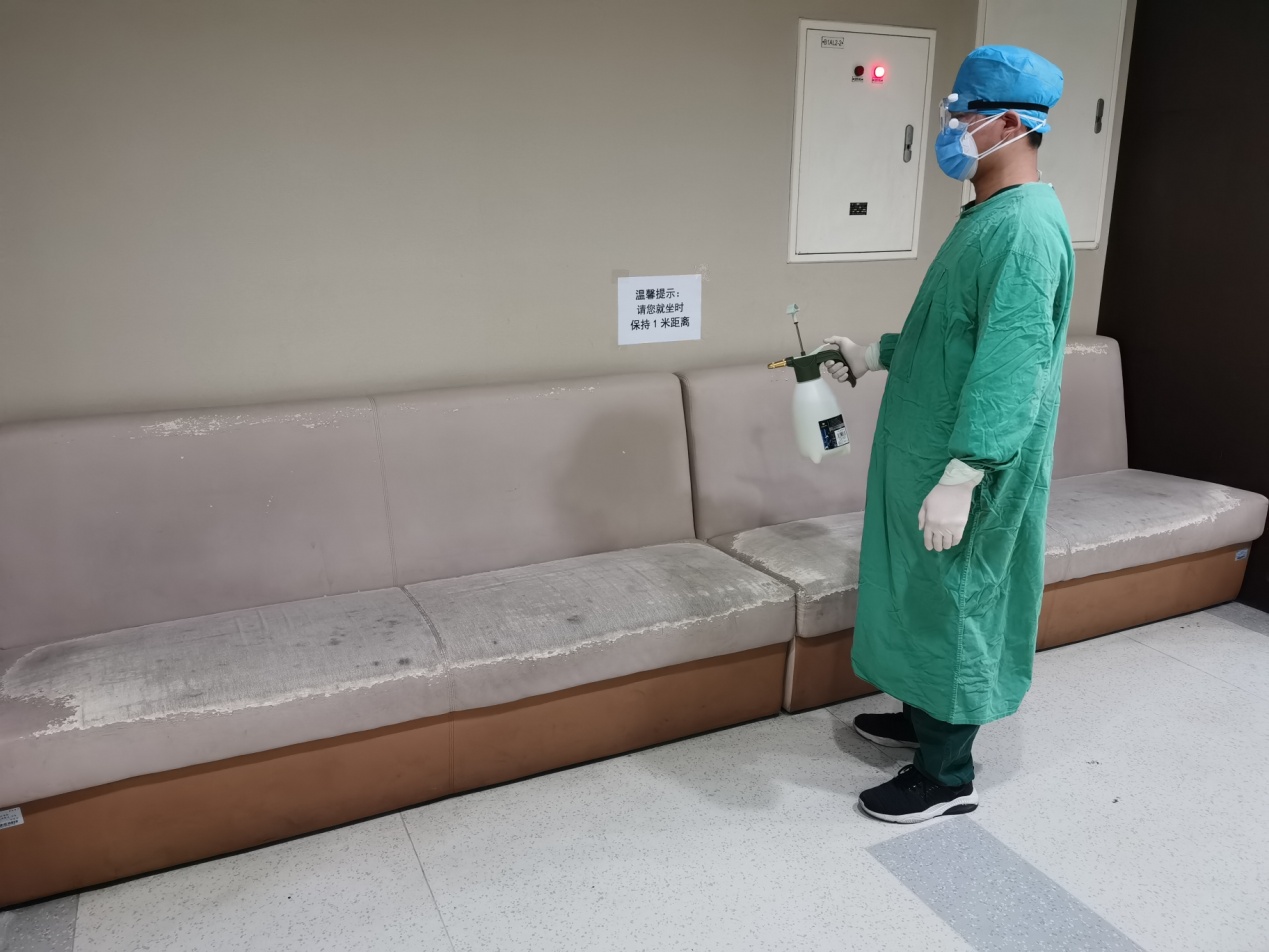 抗击疫情战斗打响之后,除了完成日常的工作,还积极参加医院举办的业务培训,竭尽所能地按时、按质、按量完成每一项院感办、护理部布置的消毒任务。从不计个人得失,加班加点、尽心尽力干好本职工作,始终坚守在工作岗位上。“我真想呼吸一口清新的空气呀!”正在承担全院消毒任务的供应室邵老师开玩笑地说道,电梯里、候诊椅上、楼梯间中,大家每天都在调配喷洒着二氧化氯消毒液,那特殊的味道必将铭记终生。