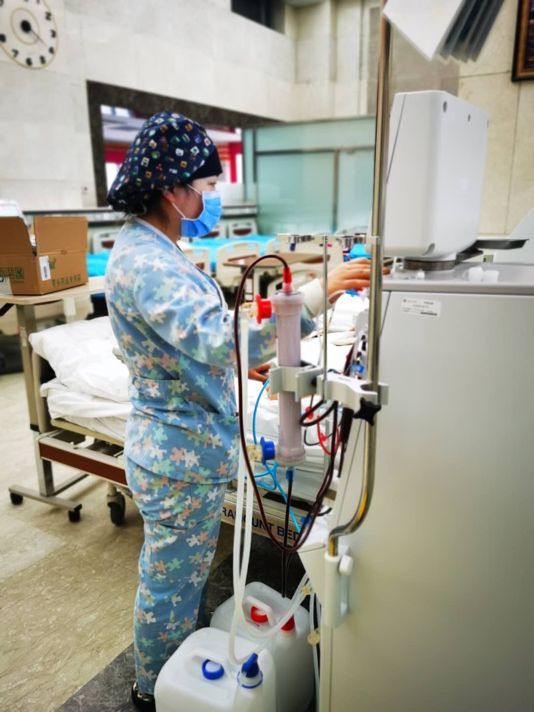 今年的春节很特殊,但对于血液透析室医护人员来说却同往常一样,姐妹们每天以饱满的精神状态迎接透析病人,每天三批次轮转,雷打不动。虽然这个春节假期被肆虐的疫情笼罩,但这丝毫没有击垮我们的意志,甚至有些姐妹还主动请战,要求春节连续值班,让离家远的同事尽可能多休息少赶路。