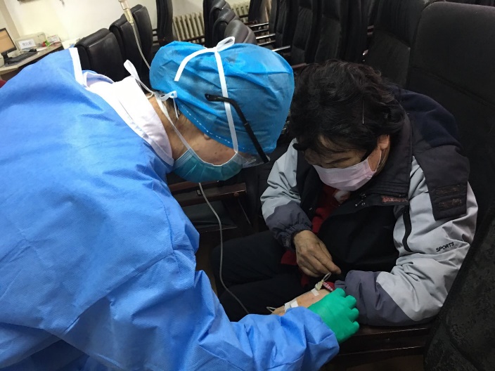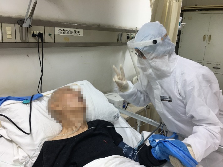 为了保证病房里患者的安全,病房谢绝家属的探视和陪伴,护士们承担起病人治疗和生活中所有照护的工作。重症病人病情危急,医生护士更是日夜守护在病床旁,抢救、监护、治疗、生活护理一刻不停。
