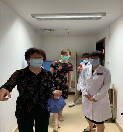 6月9日,在医学部医管处副处长庹琳老师、简忠老师陪同下,武迎宏主任再次亲临现场,对我院发热门诊改造及医院院感防控工作进行审核和指导。北京大学医院院长云虹、医务科主任高冰、综合办公室主任姜天乐及相关科室负责人全程参加了专家指导工作。