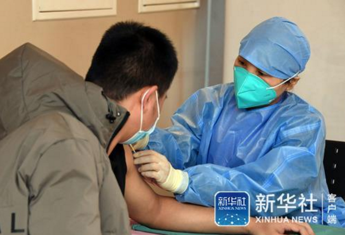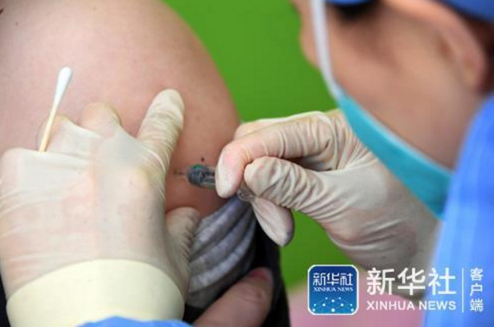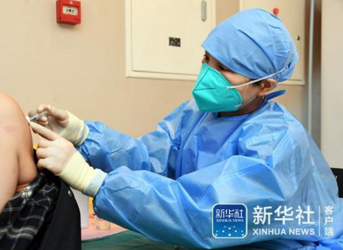 1月10日,在北京大学医院,医护人员为接种人员接种新冠疫苗。