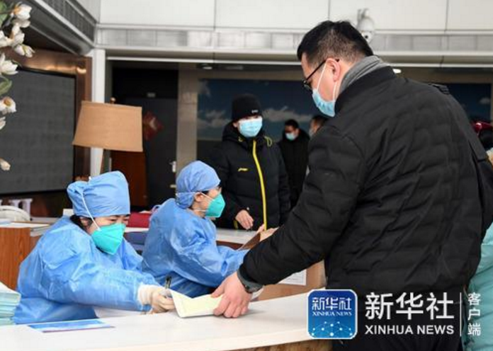 1月10日,在北京大学医院,医护人员为接种人员登记信息。