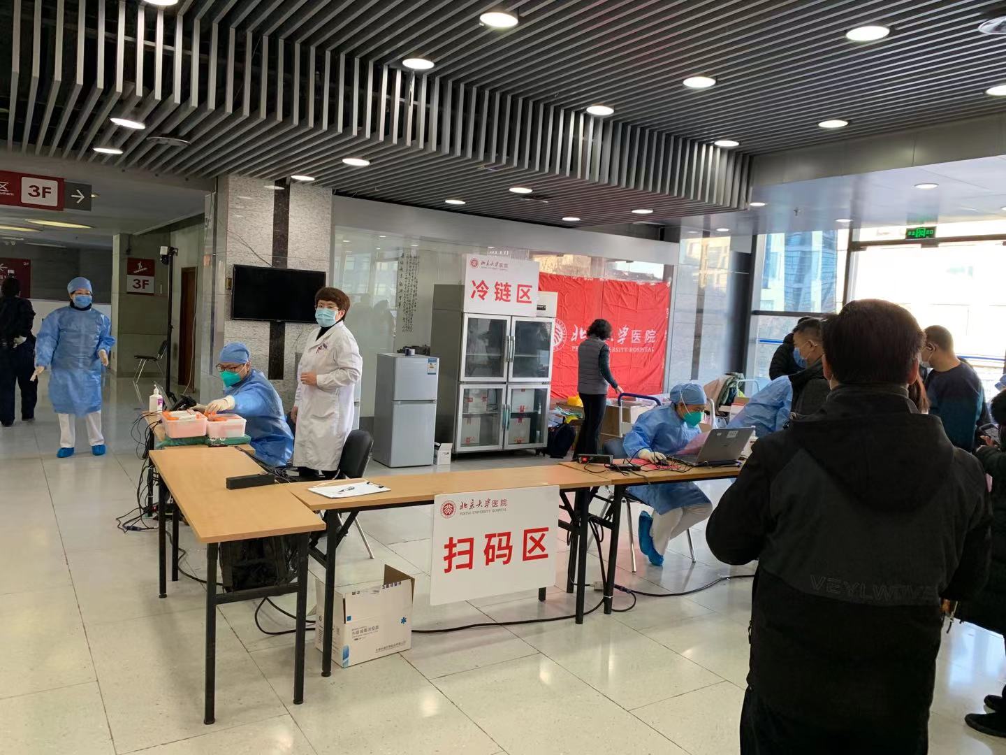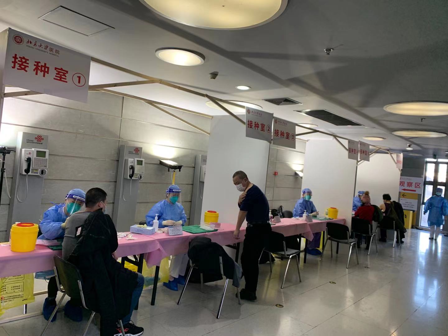 北京大学医院领导和医务科、办公室、保健科等全院人员共同投入到此次疫苗接种工作。为保校园平安,阻击新冠病毒,为师生早接种早预防,大家毫无怨言、不辞辛苦,两天内顺利完成近5000人的接种任务。