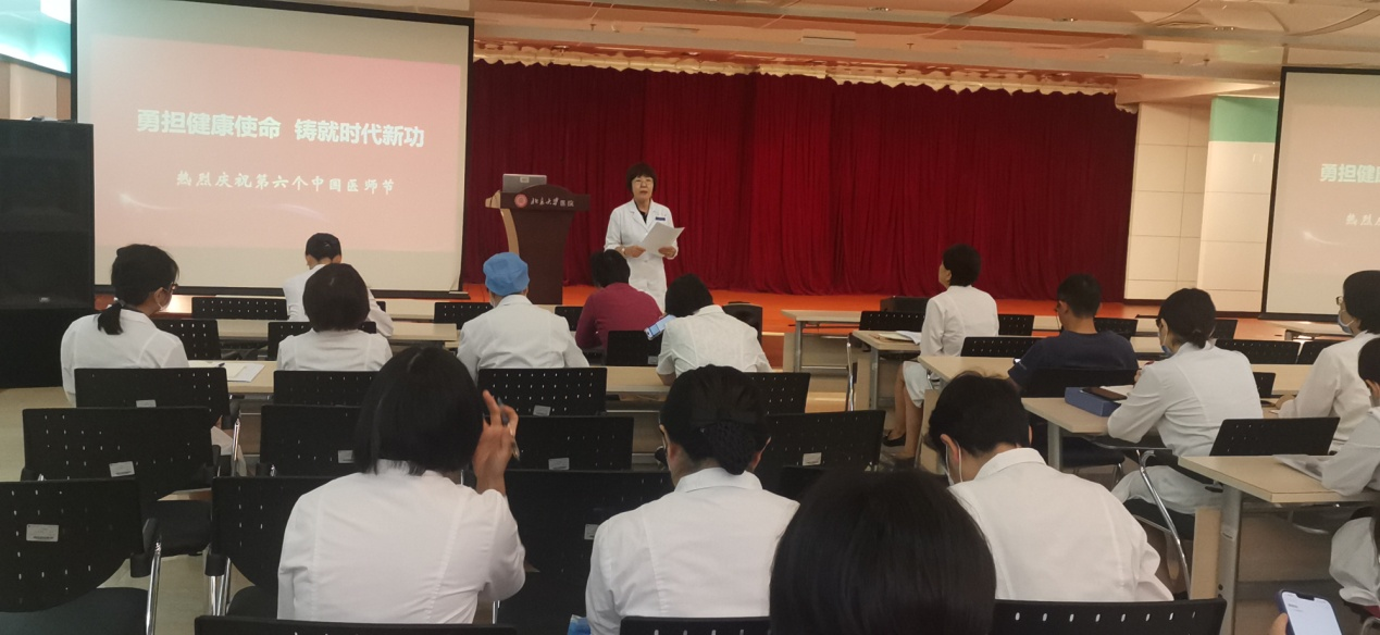 8月18日下午,北京大学医院在地下报告厅举办了医师节主题庆祝活动,院长云虹代表医院领导班子向所有坚守岗位默默奉献的广大医师们致以节日问候,激励全院医务工作者弘扬医务工作者的崇高精神,在新时代新征程上担负起推进健康中国建设,全心全意服务好全校师生和周边居民的光荣任务, 鼓励全院职工“勇担健康使命,铸就时代新功”。