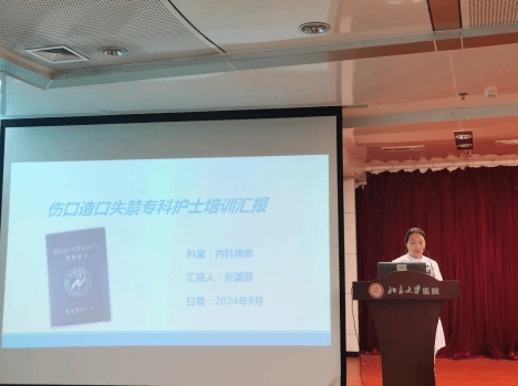 综合病房副护士长张国丽和急诊科护士周茸两位则围绕伤口造口失禁护理进行了深入探讨。她们介绍了在北京护理学会举办的培训班中学到的先进护理理念和技术,并展示了如何运用新型敷料提高患者伤口愈合速度及减少不适感的方法。
