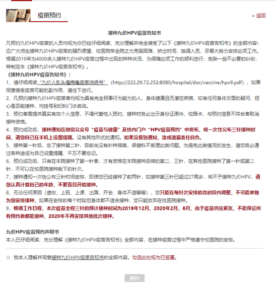 先阅读“接种九价/四价HPV疫苗告知书”再进行预约。
