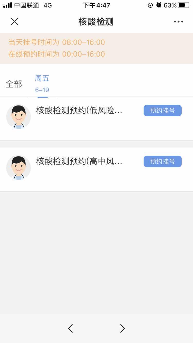 新冠核酸检测时间:周一至周五工作时间(13:30-15:30);