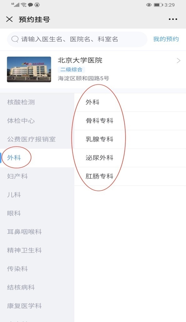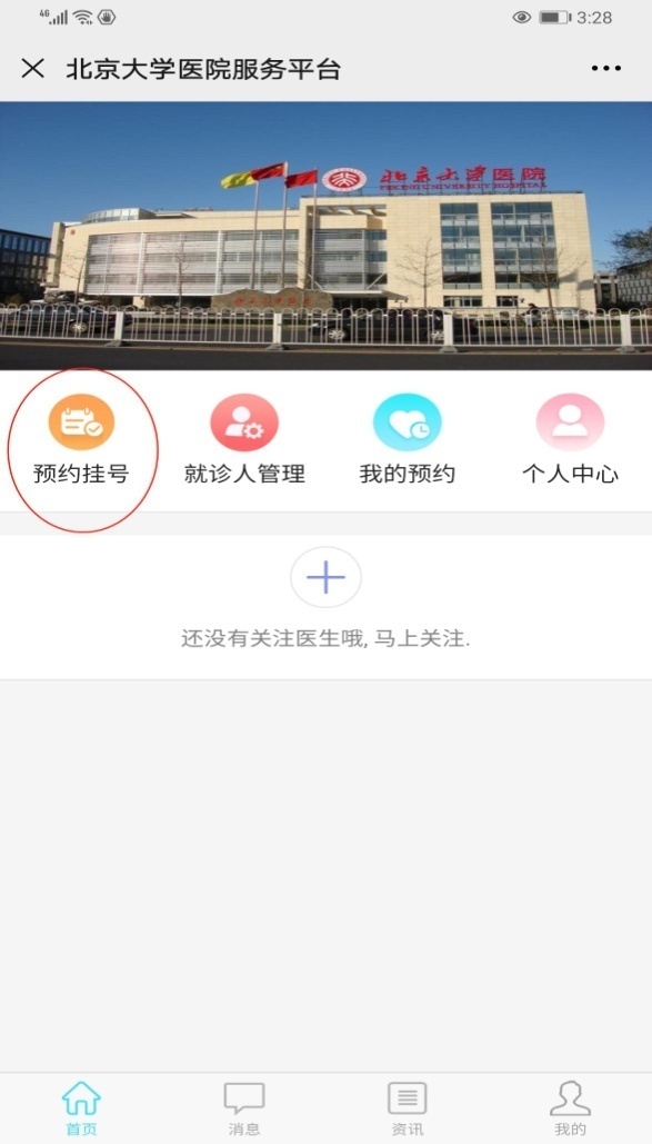 1. 关注医院微信公众号(名称:北京大学医院服务平台)进行预约挂号预约(预约时间为7:00-16:00),具体步骤如下: