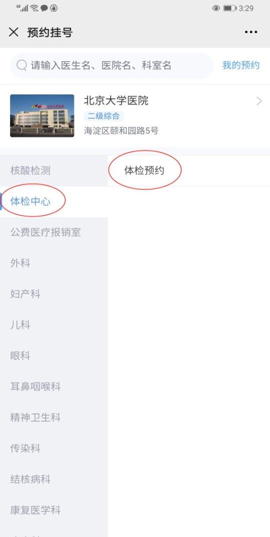 1.常规健康体检预约:请您在微信公众号(北京大学医院服务平台)进行预约:进入微信公众号→出诊信息→体检预约,根据体检类别进行选择,请您按照预约时间段前来体检。