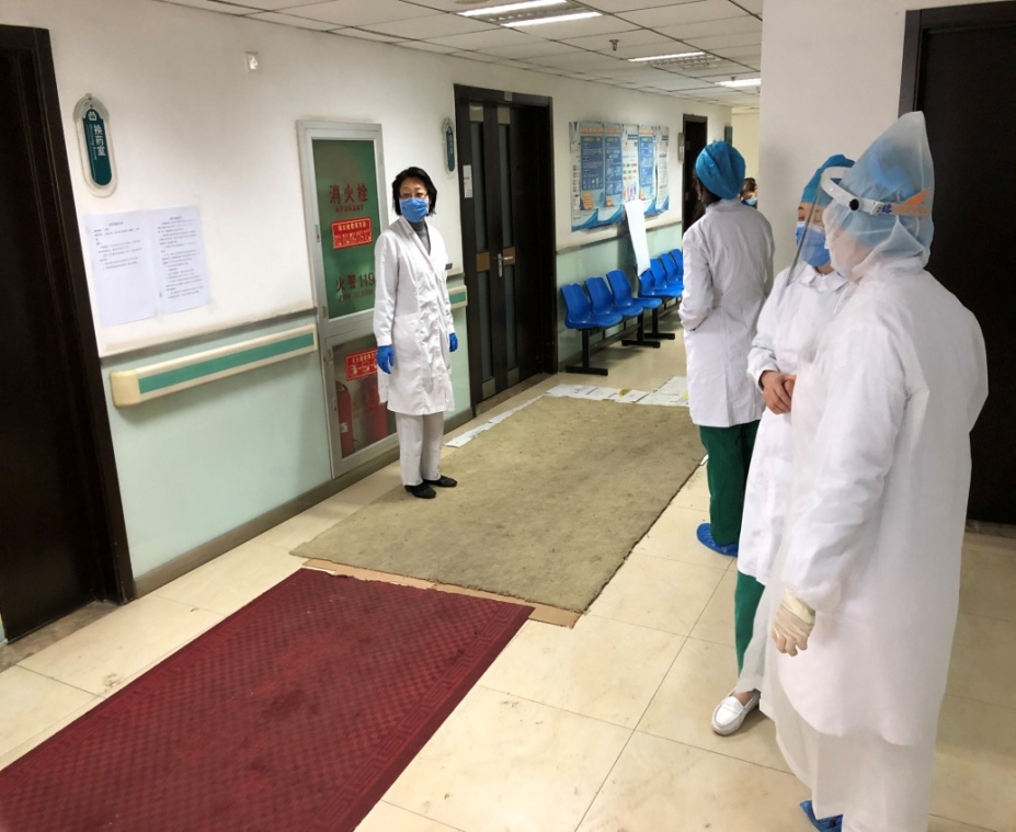 医院综合办专人专管,明确分工,保障临床一线医疗设备、防护物资的供应;医务科加强培训学习,每天进行线上、线下培训,并按时更新学习内容;院感办每天开展院感防控院内督导,指导相关科室进行消毒液调配及防护器具的有效消毒,确保医患零感染。