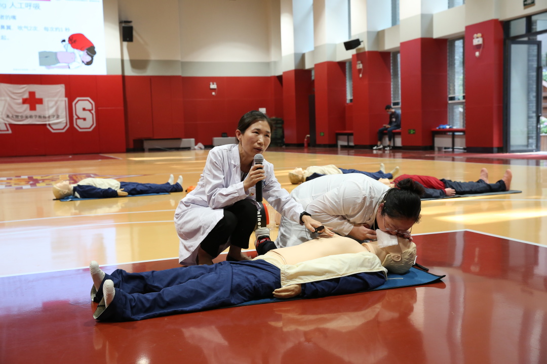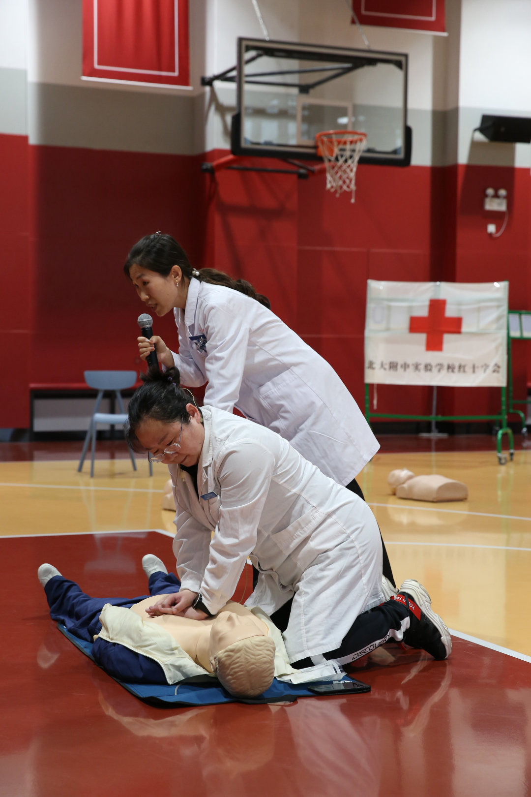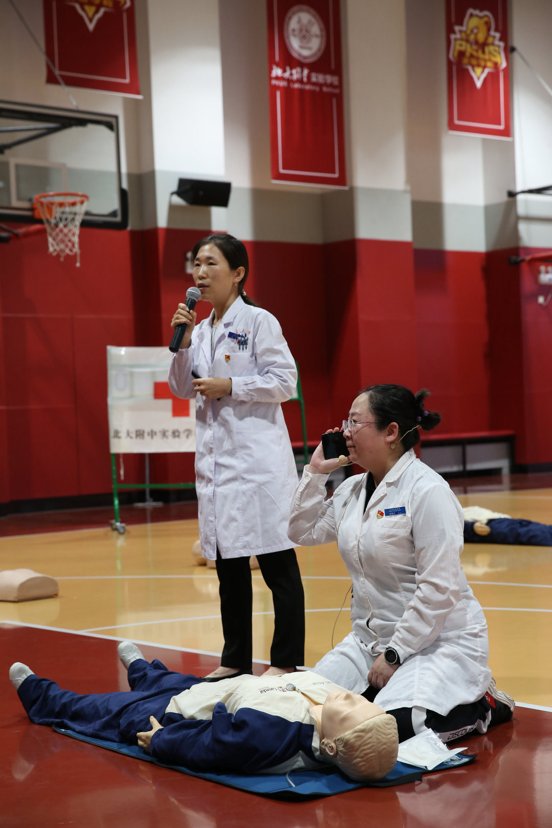 为增强学生的安全急救意识,提高学生在危急情况下的互救自救,以及学生的安全防范意识和自我保护能力。5月20日下午,北京大学医院党委与北京大学附属中学实验学校医务室合作,在北京大学附属中学实验学校篮球馆对部分师生进行“突发事件急救互救培训”,我院党委选派具有丰富培训经验的戚振云、刘丹两位党员完成。此次培训由实践学校医务室的张茜主持。